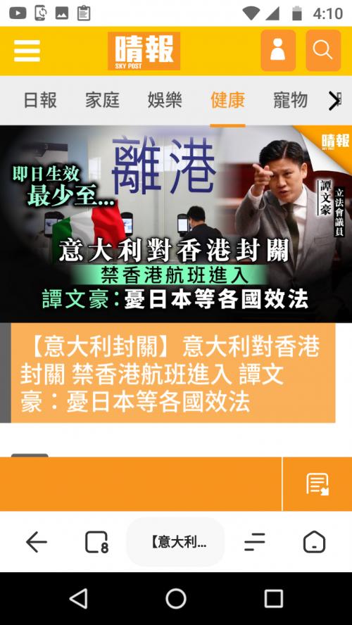 이탈리아는 홍콩 대만 중국 항공편 모두 중단