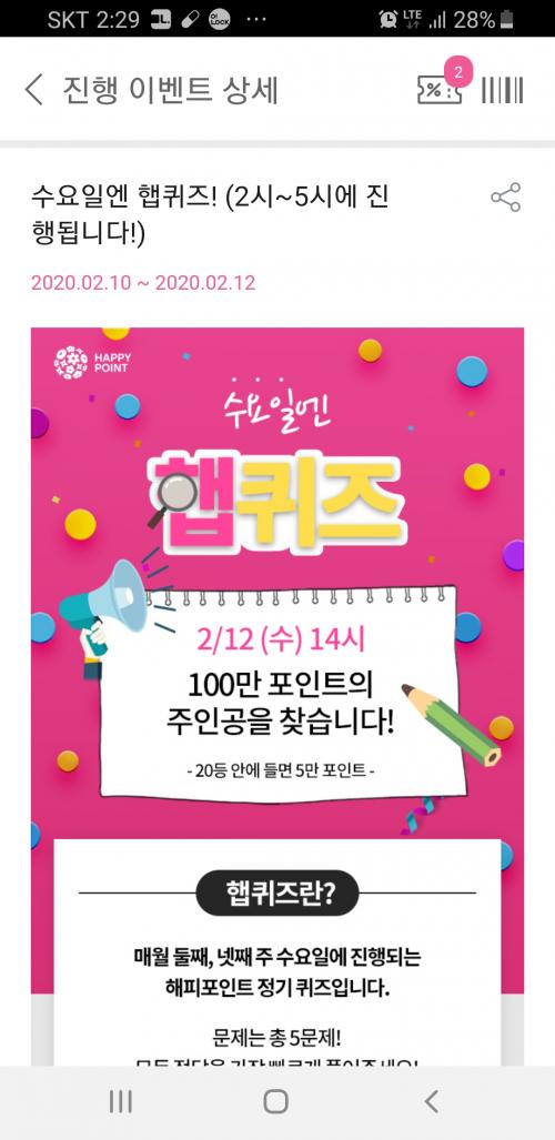 해피포인트앱 내 햅퀴즈 응모해보세요.