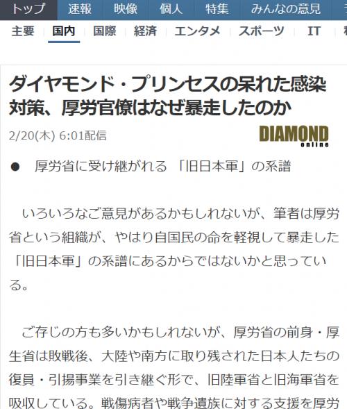 실제로 이번 신형 코로나 대응을 보면 후생 노동성은 구 일본군의 사상을 계승하고 있다고 밖에 생각되지 않는다.