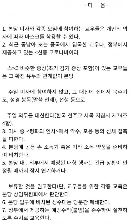 서울도 교구지침 내려왔습니다. 내용은 수원교구와 비슷하고요. | ||