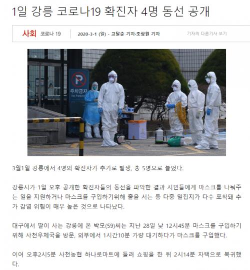 뉴스는 청정지역이라 생각한 강릉도 확진자가 줄서있었죠