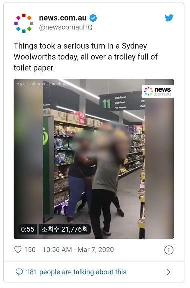 호주의 한 마트에서 휴지를 둘러싸고 발생한 몸싸움