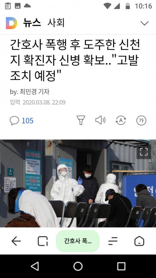 간호사 폭행 후 도주한 신천지 확진자 신병 확보.."고발 조치 예정" | 다음뉴스