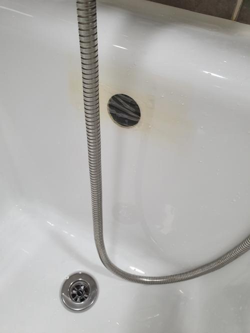 어제 욕조에 물때가 꼈길래 매직블럭으로 좀 문질렀더니 욕조마개 줄달린 부분이 삭아서 그런가 그냥 깨져버리 네요ㅋ 깨진틈으로 물이 들어갈까봐 혹시몰라서 임시로 테이프 붙여놨네요~