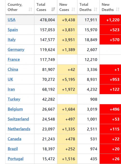 코로나19 바이러스로 사망자가 10만명이 넘었네요