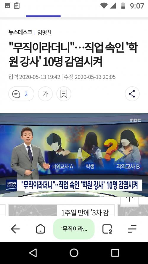 이 남성은 방역 당국의 검사 단계에서 "무직"이라고 거짓 진술했고, '학원강사'라는 사실은 당국의 역학조사 과정에서 드러났습니다.