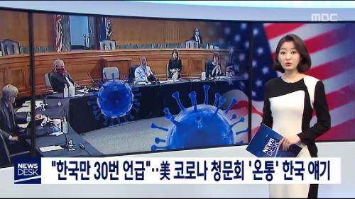 미국 의회의 코로나19 관련 청문회에서는 온통 한국 얘기가 쏟아졌습니다.