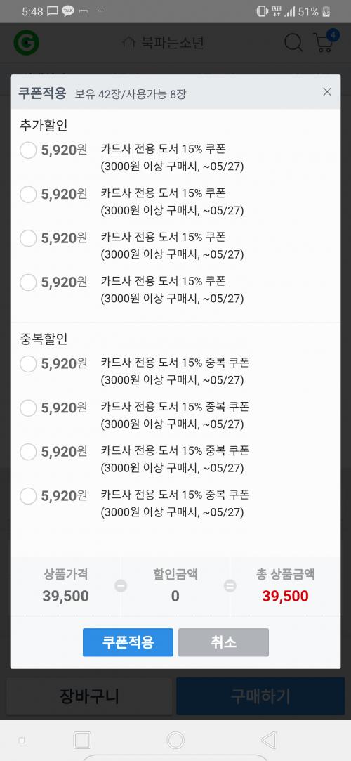 상세정보에 있는 쿠폰 2개 동시에 먹히고