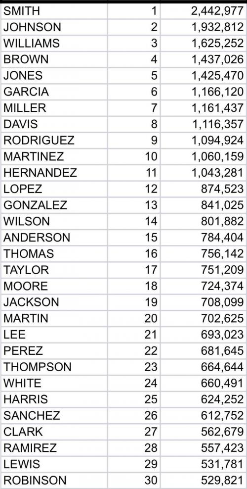 히스패닉/라틴계 성씨 비율이 생각보다 높네요. | ||