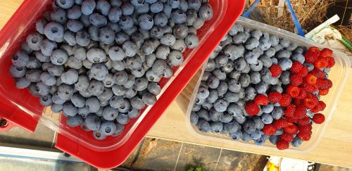 와 블루베리도 있네요~~ 농사지을 땐 고생해도 이렇게 따면 음청 기분좋을 것 같아요. 판매는 안하시옵니까. | ||