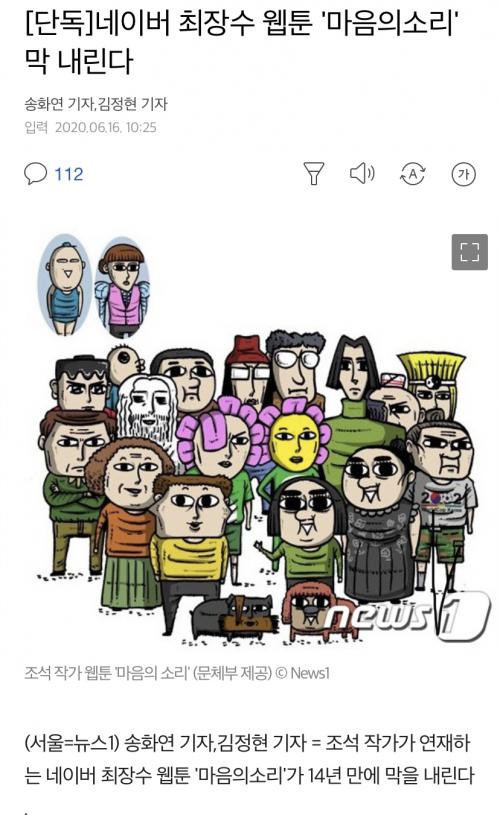 마음의소리 호랭총각등 최장수 1세대는 올해로 정리하나보네요..