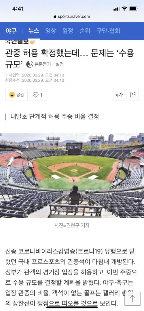 개학도 충분한 고려없이 강행해서 여기저기서 터지는 마당에 스포츠관람까지 푸는건 좀 무모해보이네요. | ||