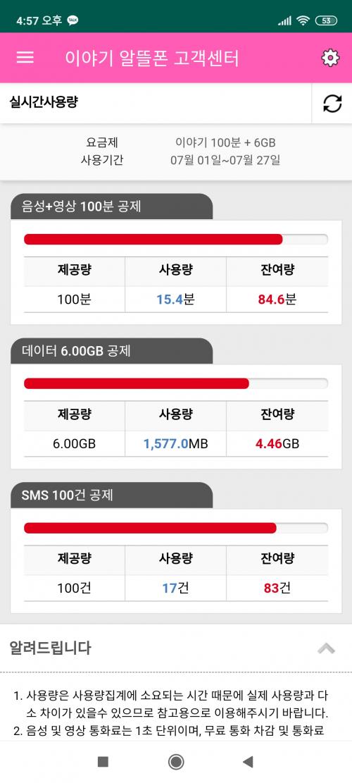 카톡 사용량이 많아진 만큼 전화 무제한 가입해도 쓸 일이 많지 않네요.. | ||