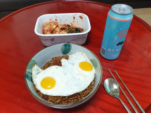 짜파게티도 두개, 계란도 두개..