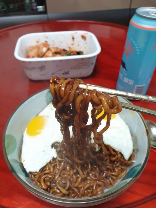 화사 스타일 트러플 오일 넣은 짜장라면이네요