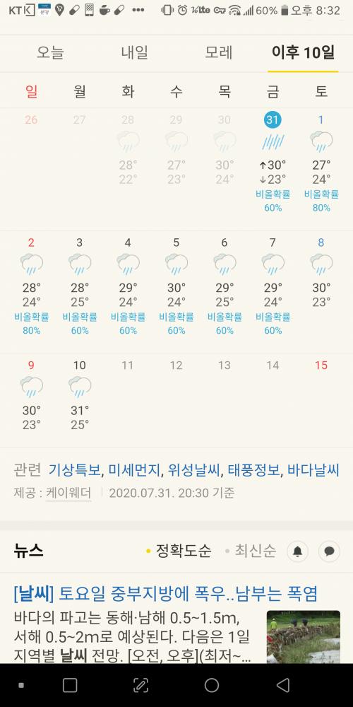 일기예보 대로라면 올해는 큰 더위도 없고 열대아도 없이 끝나겠네요