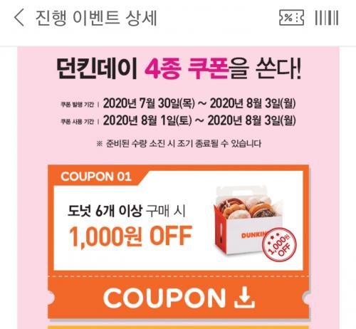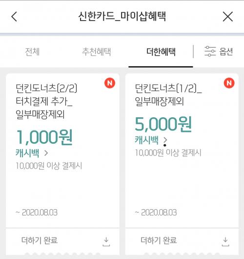 신한 마이샵 던킨 5천원 캐시백+터치결제 천원 더한후 해피포인트 도너츠6개 1천원 할인 쿠폰 받으시면
