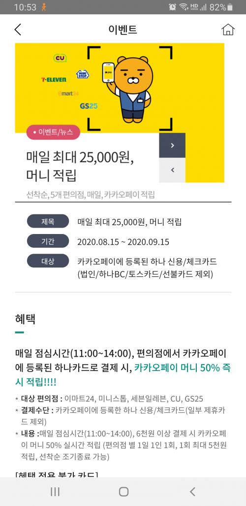 하나카드 이벤트 오늘 조기종료됬다고 떴어요 ㅠ | ||