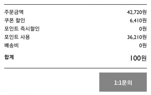 15프로쿠폰 + 출첵포인트모은거 + 주말10000포인트로 이거저거 빼고 내 돈 낸 건 단돈 100원!