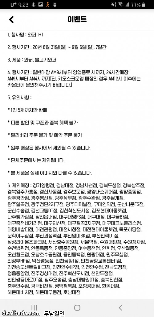 제외 매장이 너무나 많네요.. | ||