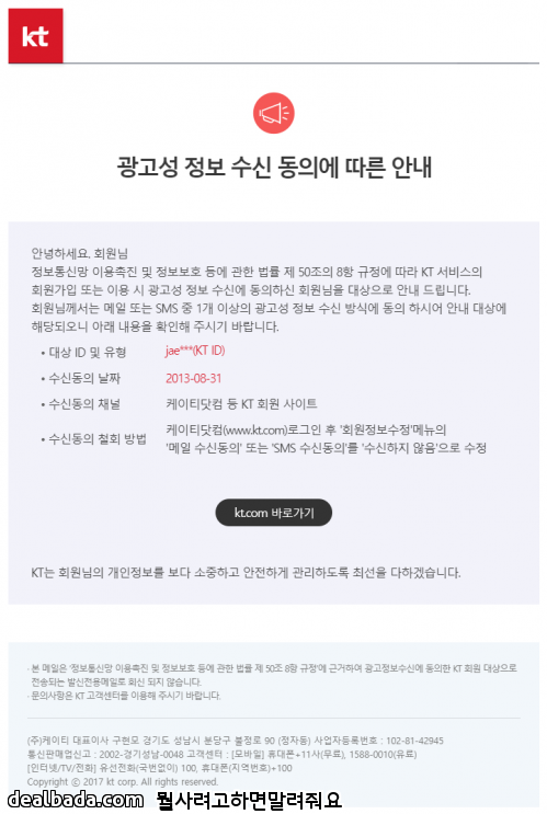 KT에서 개인정보 관련 이메일이 왔습니다