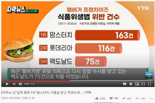 단순히 적발건수가 많다 업계1위로 위생불량하다란 타이틀로