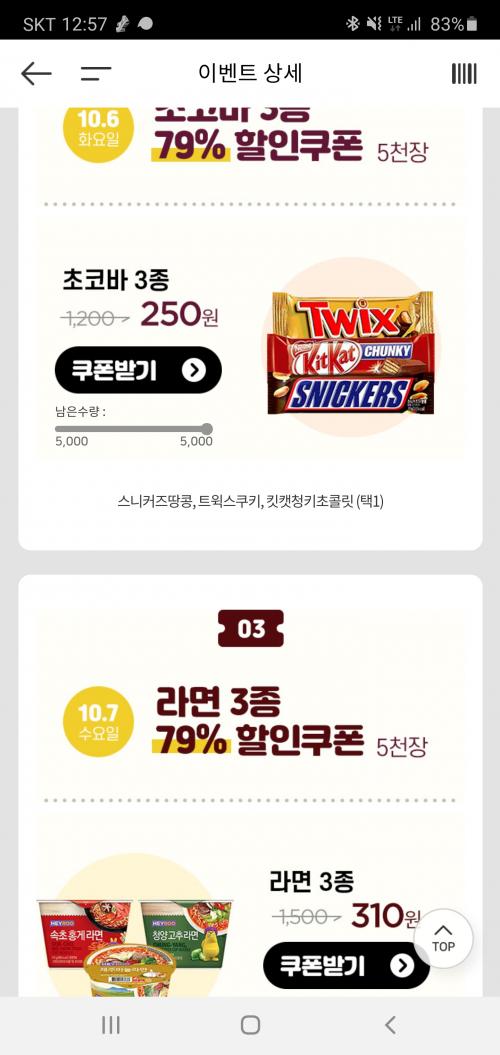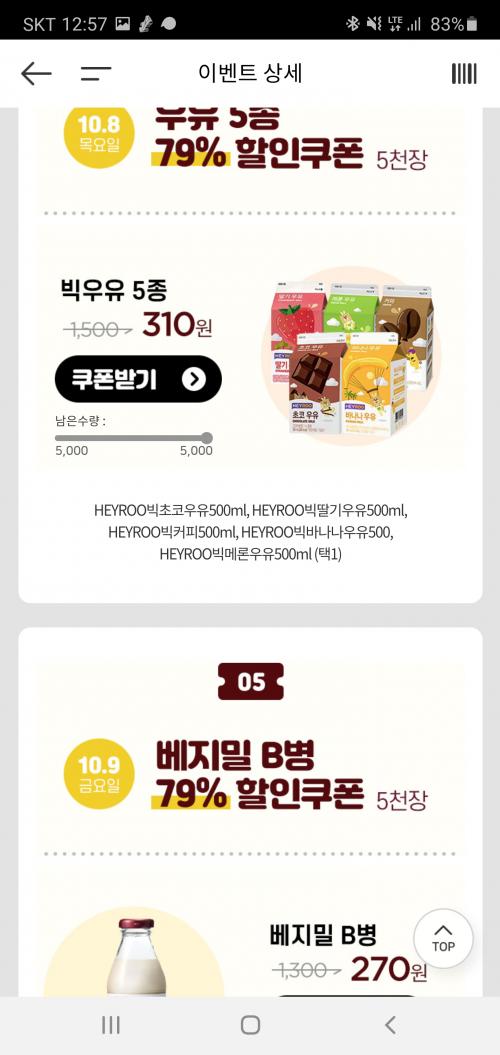 하루에 한가지 물품 선착순 행사 있습니다.