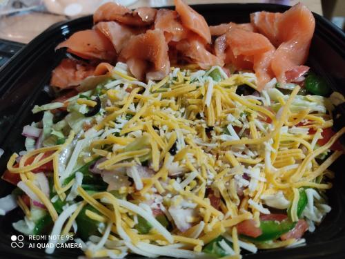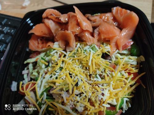 냉동해둔 연어를 올려서 다시 먹었습니다.