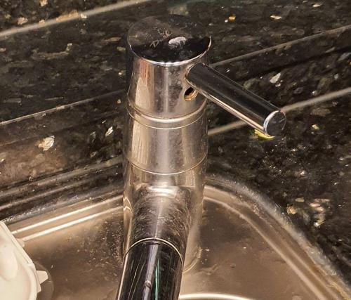 주방 싱크대 수전이 오래되었는지 완전히 잠기지 않고 한방울씩 떨어지던게