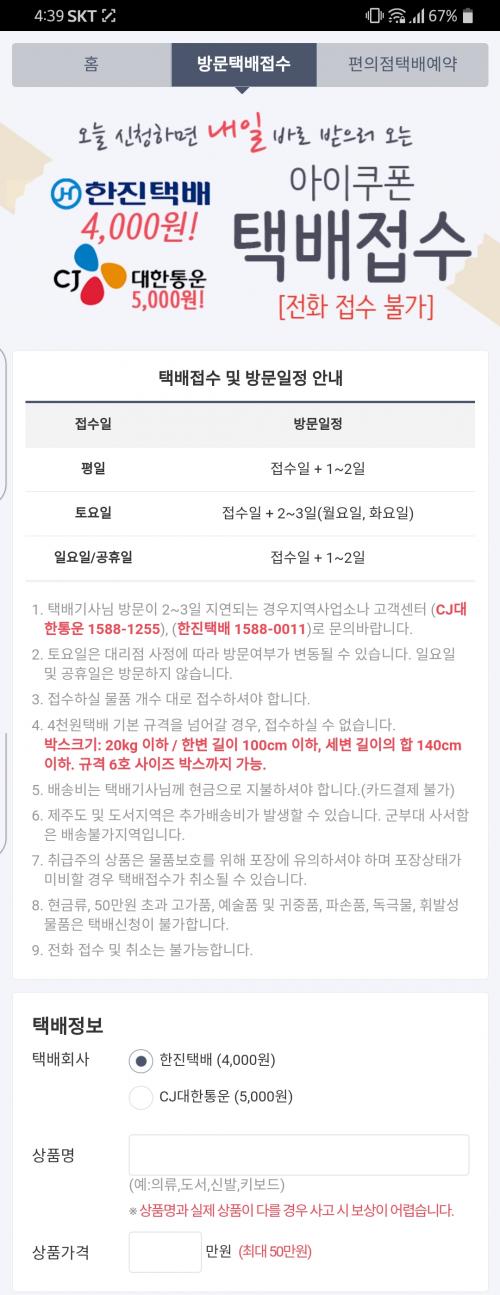저는 오늘 한진으로 접수했어요 ㅎㅎ