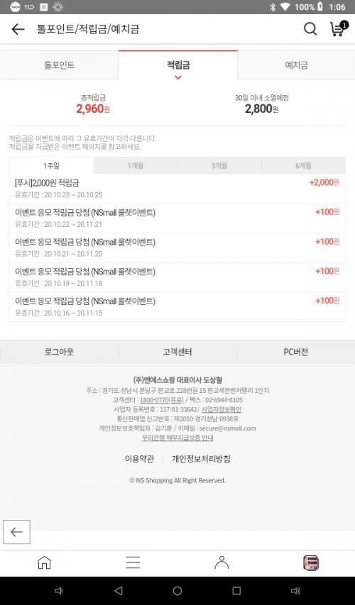 NS홈쇼핑 적립금 들어왔네요. > 자유게시판