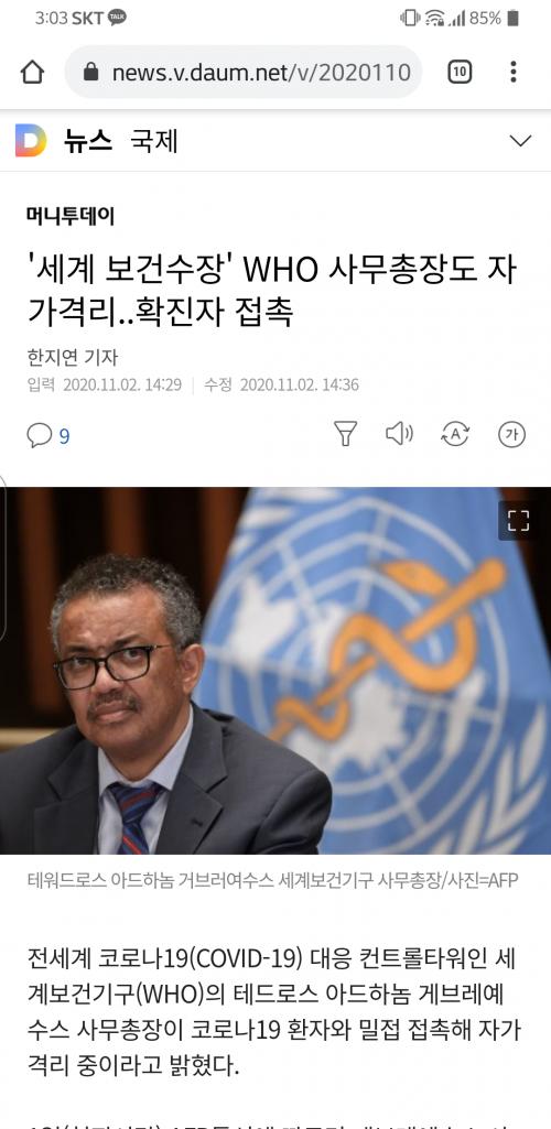 아직 걸린건 아니고 확진자 접촉해서 자가격리라고 합니다. | ||
