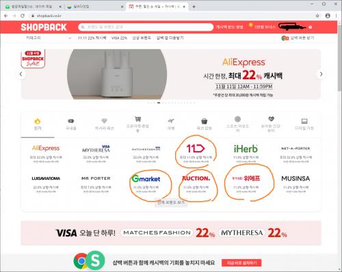 오늘 11시부터 2시까지 11% 캐시백입니다. (최대 3천원)