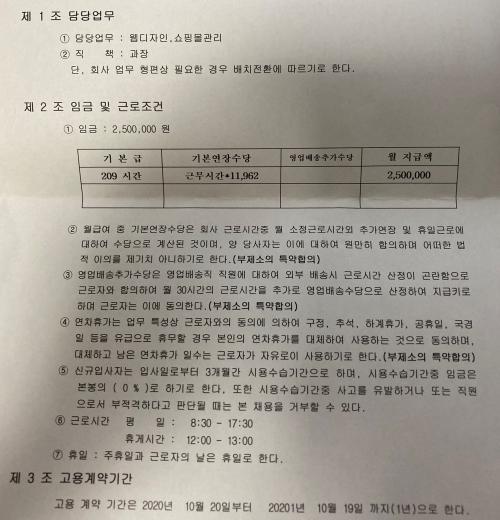 이것도 그렇긴한데 좀 웃긴게.. 근로계약서작성할때 계약기간이 1년되어있길래
