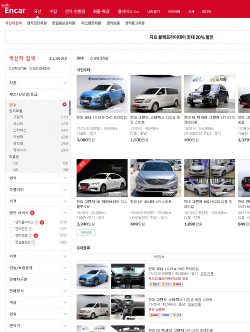 엔카에서도 검색하기 버튼 누르면 아래 화면이 휑하구요.