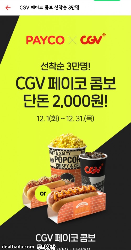 페이코앱에서 cgv검색 하시면 나옵니다 | ||