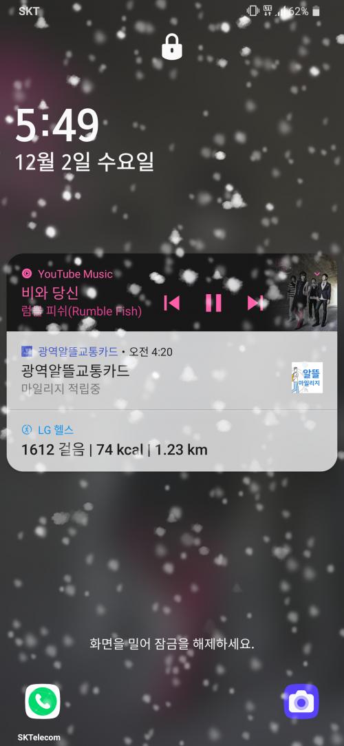 아침에 눈뜨니 이렇게 폰 배경에 눈이 내리네요..