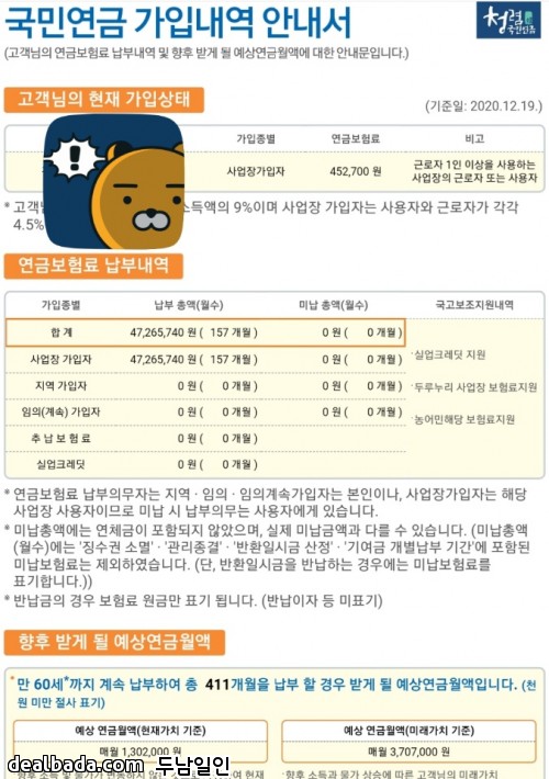 저랑 납부금액이 거의 비슷하시네요.. 전 아직 137개월이라.. 기간이 더 남았습니다..ㅠ | ||