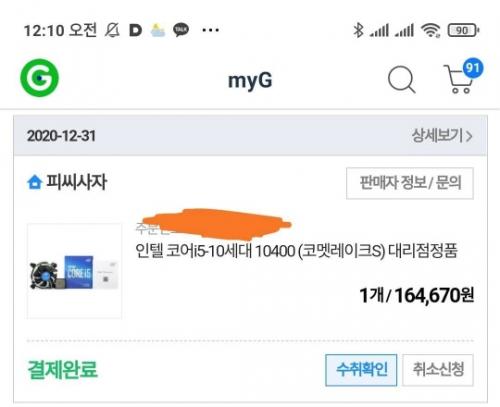 2020년 마지막 지름은 ....i5-10400 입니다.
