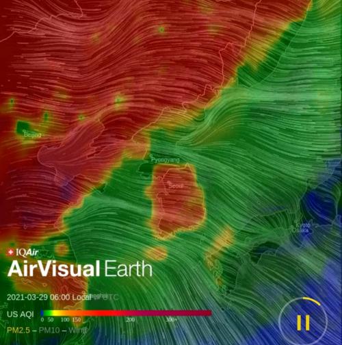 북한은 측정소가 없어서 저렇다는 썰이..그런데 베이징은 왜 녹색일까요. | ||