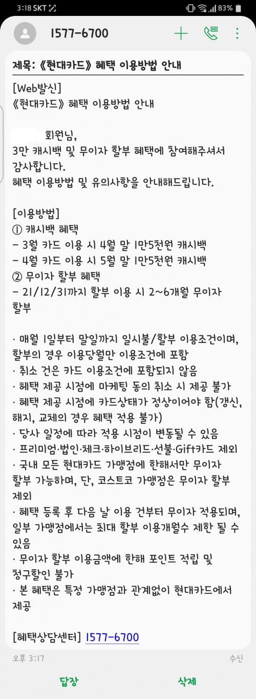오...현대카드좋네요 제 롯데는 나 해지!!응잘가!!