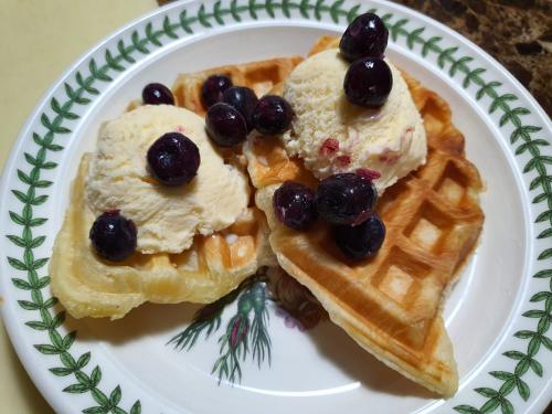 아이스크림하고 블루베리 올려서 간식으로 주네요..