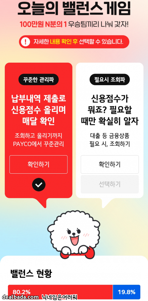 5월 9일 페이코 밸런스 게임 현황은 빨강이 앞섭니다.