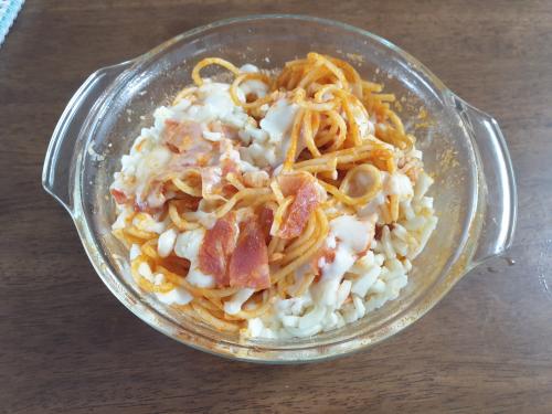꽤 날짜가 지났는데도 냉장고에서 잘버텨준 스파게티를 기특해하며. .