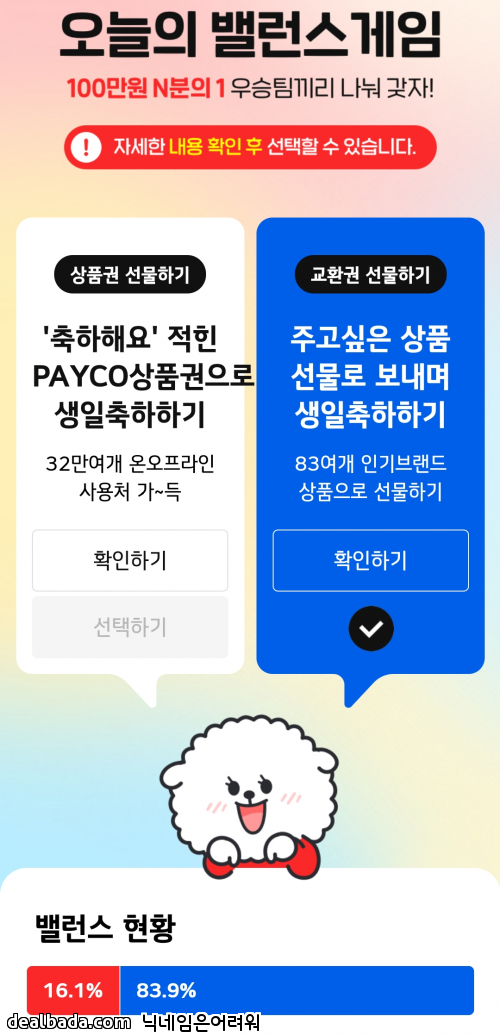 페이코를 안쓰는 사람도 있으니 아무래도 교환권이 낫지 싶습니다.