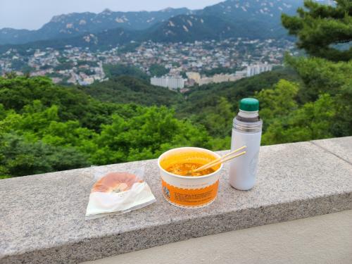 라면은 못참겠더라고요. 들고 올라갔던 단팥빵과 열심히 먹으면서 내려오는 코스 고민하고 있었는데