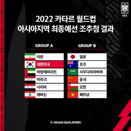 저쪽은 큰 이변 없는이상 호주랑 일본 올라가겠네요. 중국이랑 베트남이랑 개싸움 하는거 보고싶네요. | ||