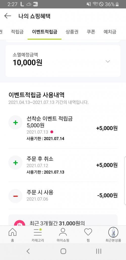 그리고 지난주에 결제했던게 어제 품절취소되서 환불된게 있어서 아이디 한개는 만원이네요.