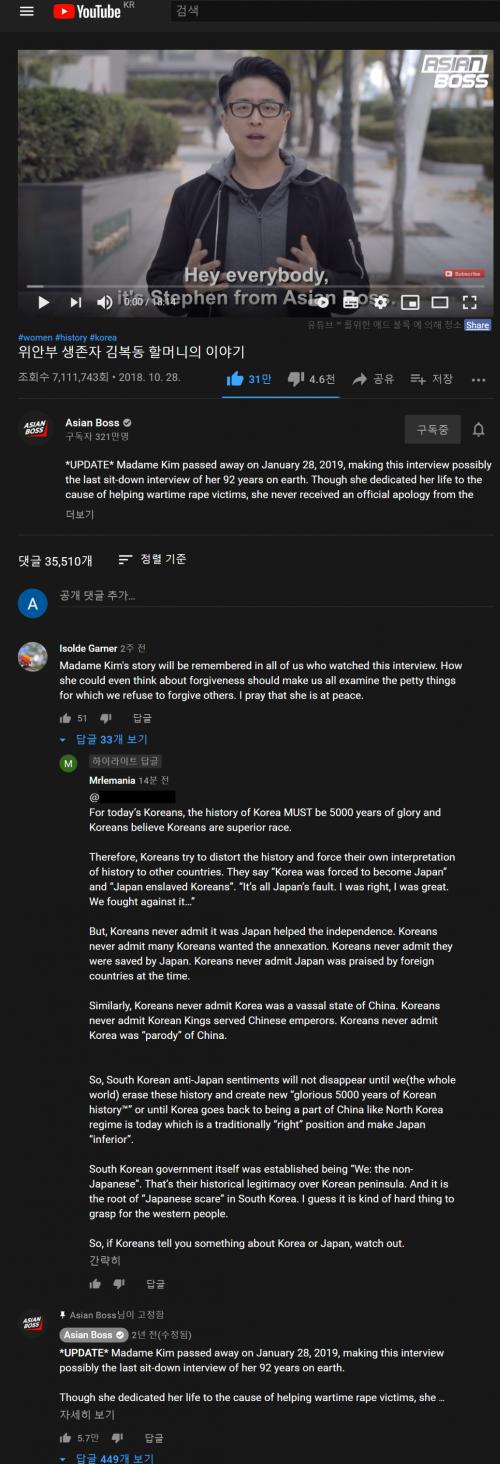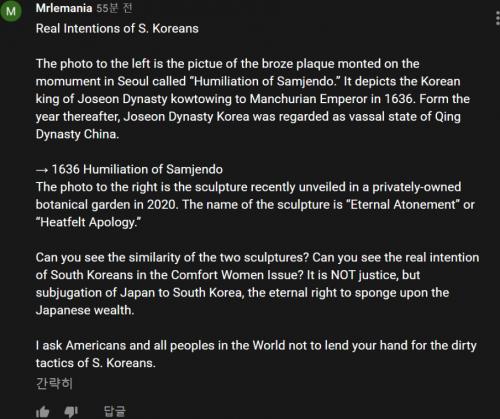 그래서 한국의 반일 정서는 전 세계가 이 (한국인이 지어낸 가짜) 역사를 지울 때까지 사라지지 않을 것이다.