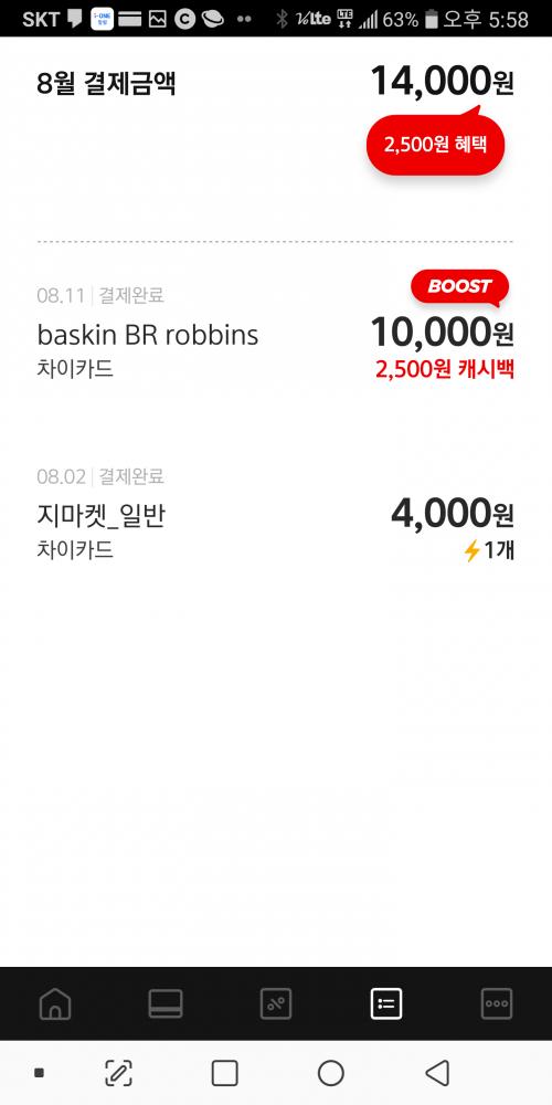 차이카드에사 배라 2500원 부스트 하시면 됩니다.